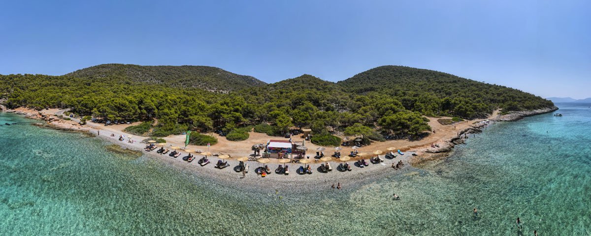 Περιγραφή : Βοτσαλωτή παρθένα παραλία, περιτριγυρισμένη από δάσος πεύκων. Εύκολα προσβάσιμη με δρόμο με υπαίθρια καντίνα.