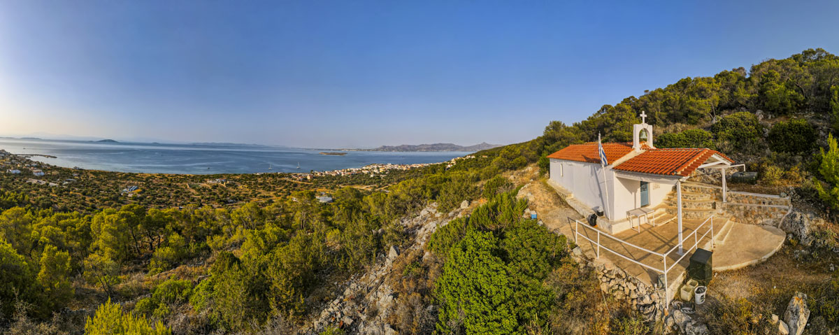 Περιγραφή : Πρόκειται για μονόχωρη βασιλική με δίρριχτη στέγη, κατασκευασμένη από πωρόλιθο. Εσωτερικά, το δάπεδο είναι επιστρωμένο με μαλτεζόπλακες, ενώ οι τοίχοι είναι επικαλυμμένοι με ασβέστη και καλύπτουν σχεδόν ολοκληρωτικά τις τοιχογραφίες. Το τέμπλο είναι πώρινο και η αψίδα στεγάζεται με ημιθόλιο. Στον προαύλιο χώρο του ναού, δύο τάφοι φημολογούνται πως ανήκουν σε πειρατές. Ο ναός εγκαινιάστηκε από τον Άγιο Νεκτάριο Αιγίνης.