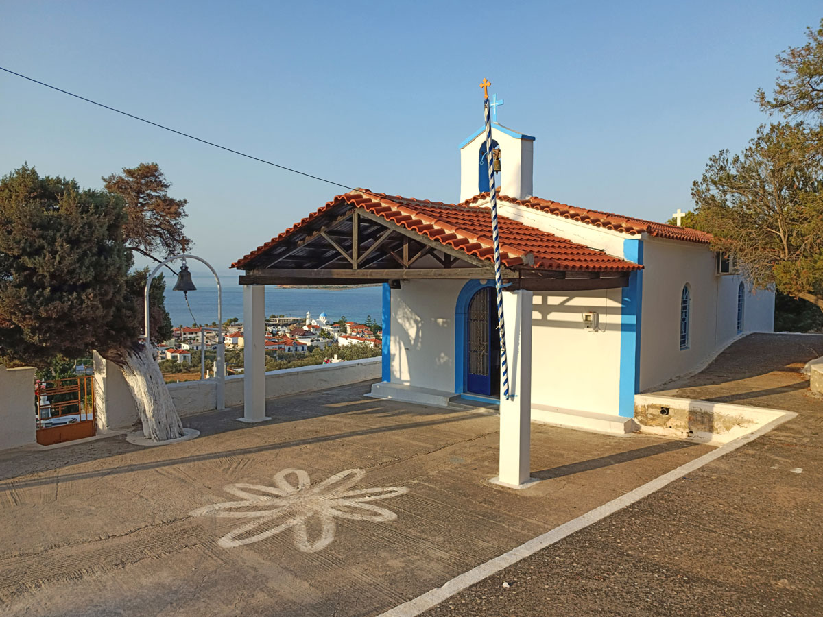 Περιγραφή : Μονόχωρος ναός μικρών διαστάσεων με δίρριχτη στέγη. Ο ναός έχει ανακαινιστεί και το καμπαναριό είναι το μοναδικό αρχιτεκτονικό στοιχείο που διασώζεται από τον παλαιότερο ναό. Ενδεχομένως και να χρονολογείται πριν από τον 19ο αιώνα. Κατά την παράδοση το δάπεδο του ναού ήταν επιστρωμένο με μαλτεζόπλακες, ενώ παλαιότερα ήταν η μητρόπολη του νησιού.