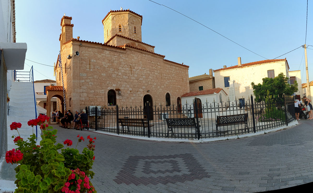 Περιγραφή : Στο κέντρο του οικισμού βρίσκεται ο ναός της Αγίας Κυριακής και γιορτάζει με μεγάλο πανηγύρι κάθε καλοκαίρι στο νησί.
